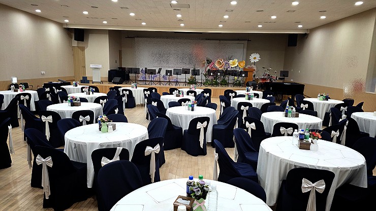 행사는 저녁행사였지만 테이블과 의자 셋팅을 공연하기전에 리허설을 진행하기 때문에